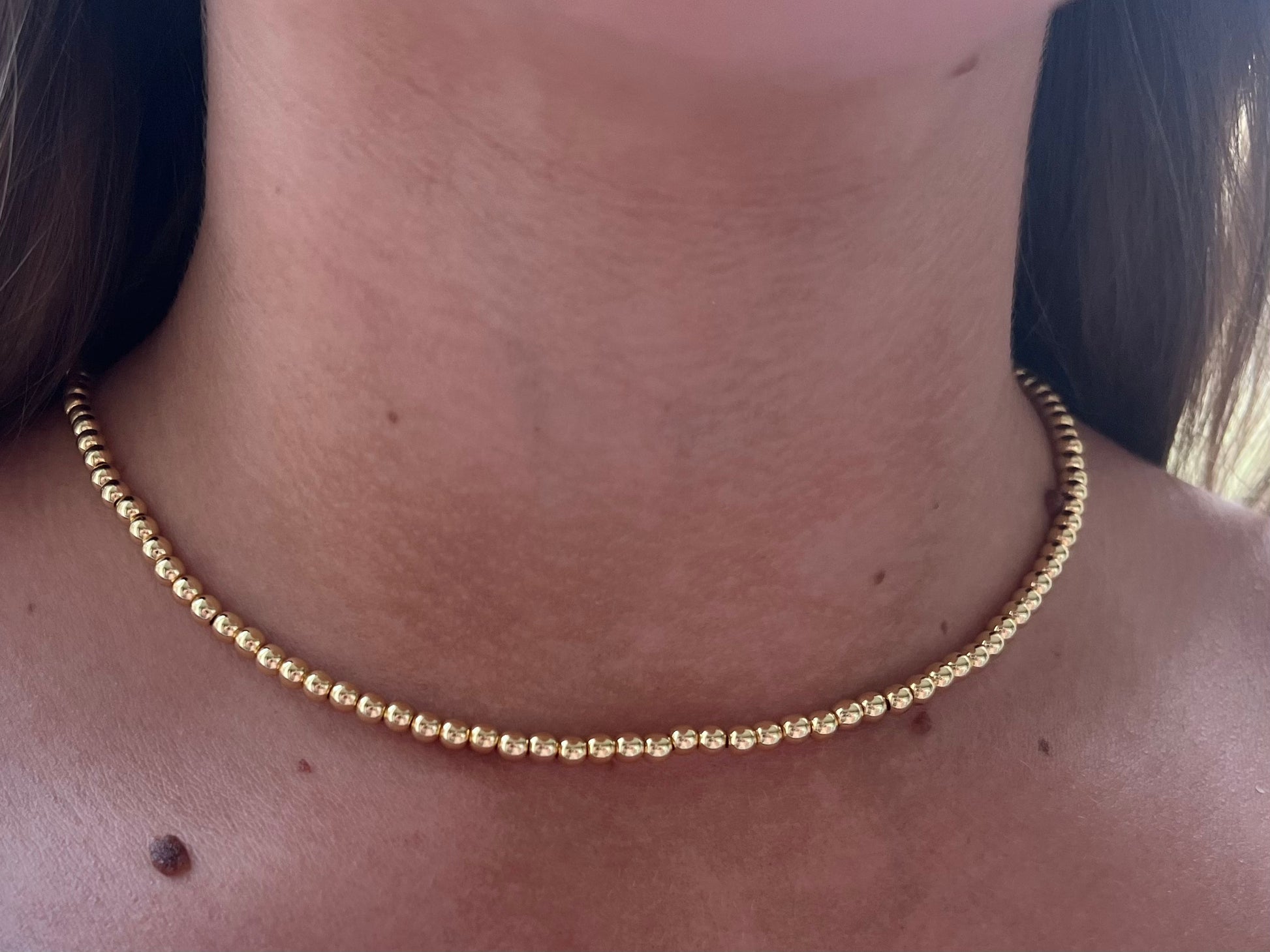 This beautiful Gold Beaded Necklace is made of stainless steel.