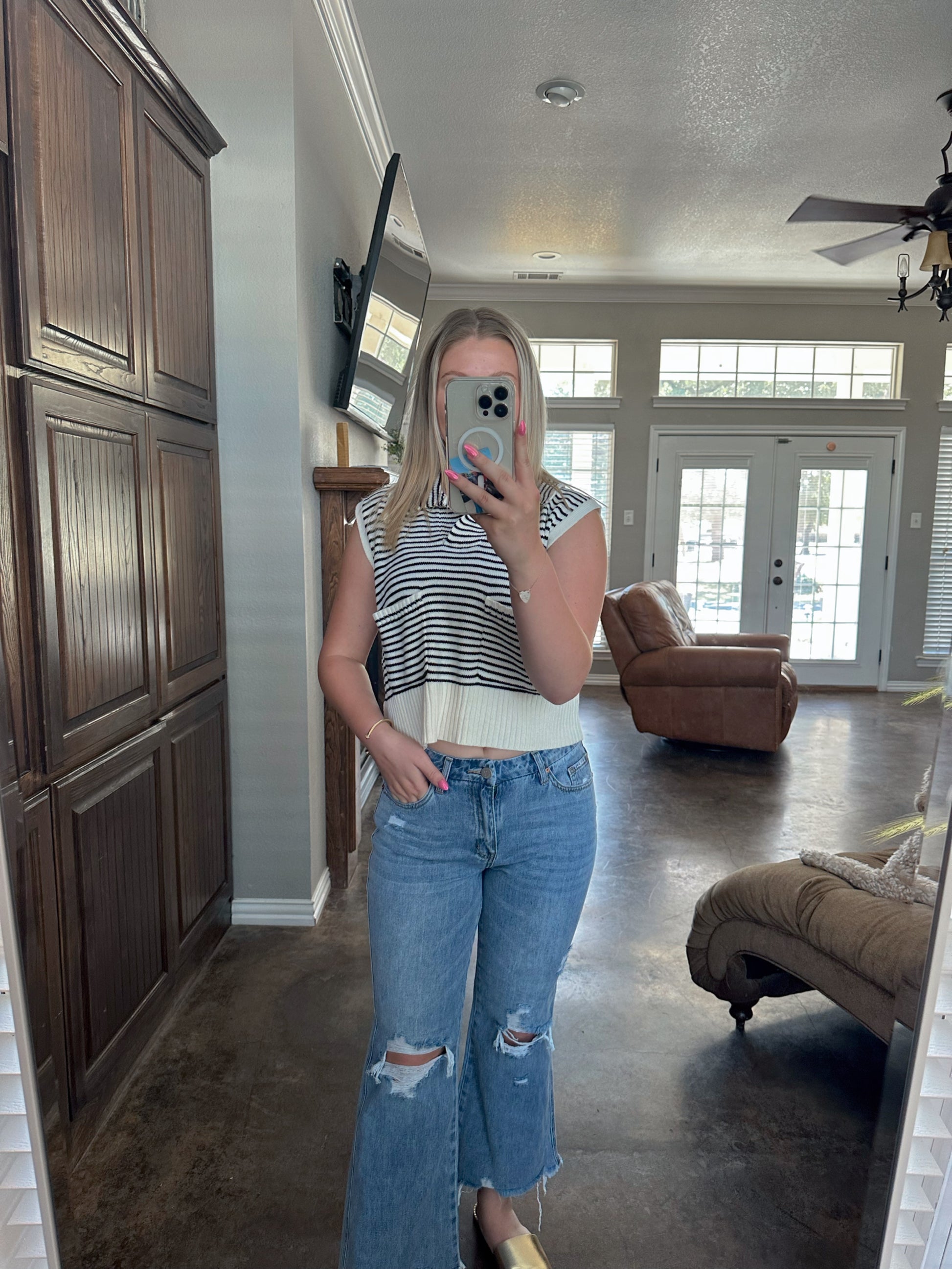 Stay cozy and classy with this Striped Vest Sweater Top! A fun spin on a classic, this collared, sleeveless number will have you looking your best even on a casual day -- a style that never stops!